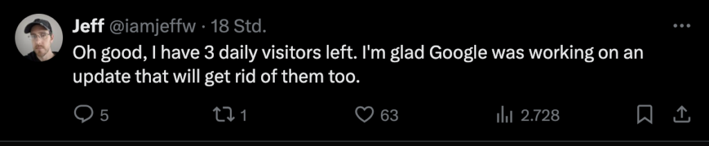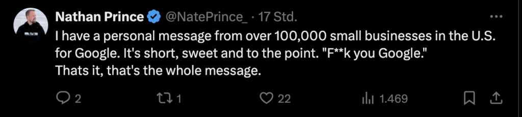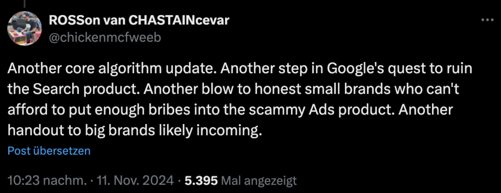 Die Kommentare und das Feedback aus der SEO-Community sprechen für sich und sind durchweg sehr negativ. Der fast einhellige Tenor: Google zerstört mit den Updates vor allem kleinere Marken und Existenzen.