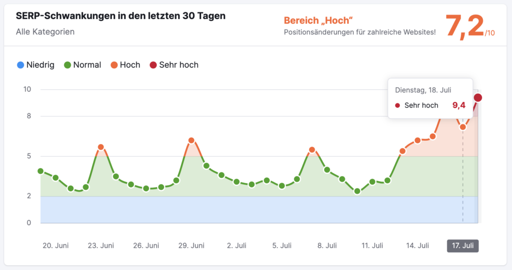 - massive Rankingfluktuationen in den SERPs seit dem 16.07.2023