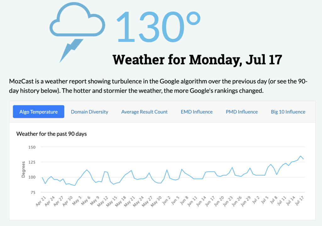 - MOZcast – höchst-Temperaturen beim Algorithmus-Wetter für SEOs