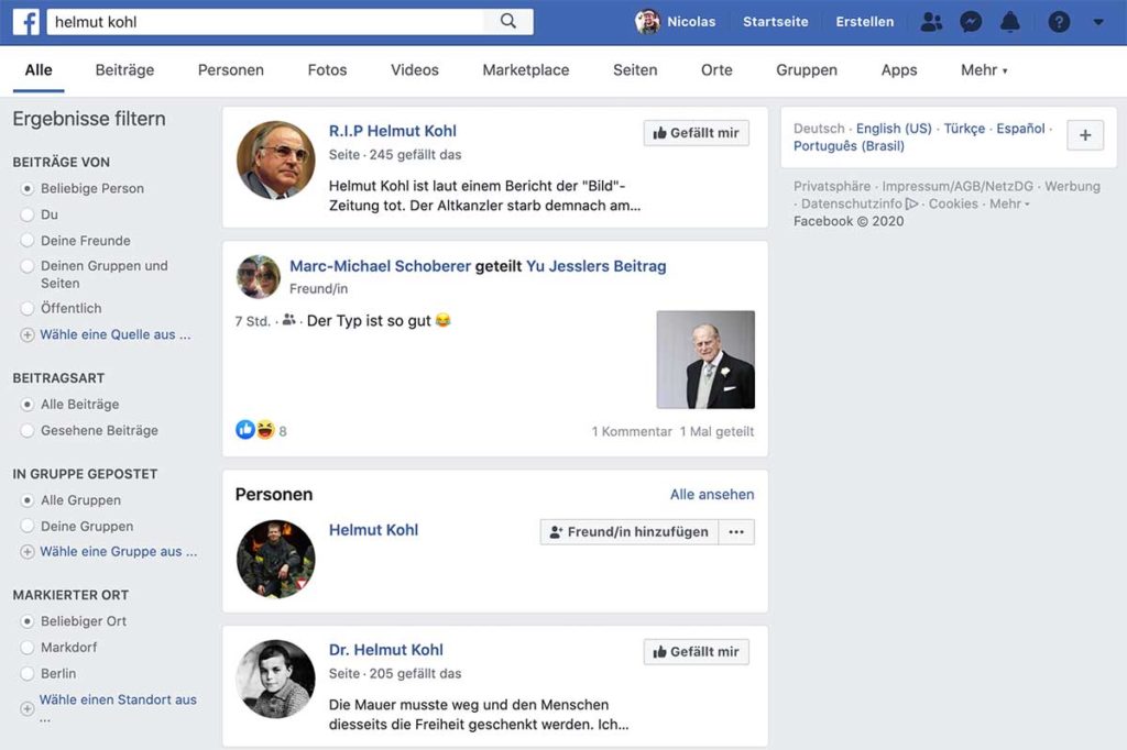 Und auch für Promis funktioniert das noch nicht immer reibungslos: bei der Suche nach „Helmut Kohl“ bleibt die Zusatzinfo allerdings leer.