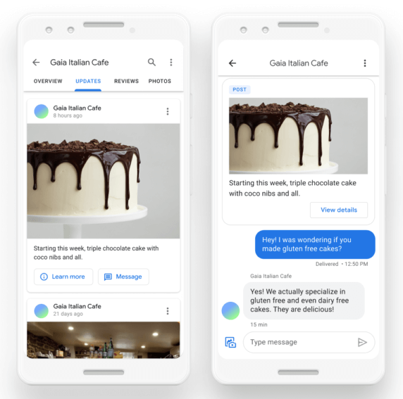 „Wir führen die Möglichkeit für verifizierte Unternehmen ein, direkt aus der Google Maps-App heraus Nachrichten an Kunden zu senden. Sobald ein Unternehmen den Nachrichtenversand über sein Unternehmensprofil aktiviert hat, kann es den Kunden in Google Maps über den Abschnitt „Geschäftsnachrichten“ auf der Registerkarte „Updates“ antworten.“