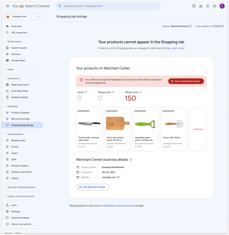 Die Google Search Console hat einen neuen Bericht hinzugefügt, der Händler darüber informiert, wenn Produkte aufgrund von Problemen nicht mehr im Shopping-Tab erscheinen. Diese Informationen waren bisher im Google Merchant Center verfügbar, sind nun aber auch in der Search Console abrufbar.