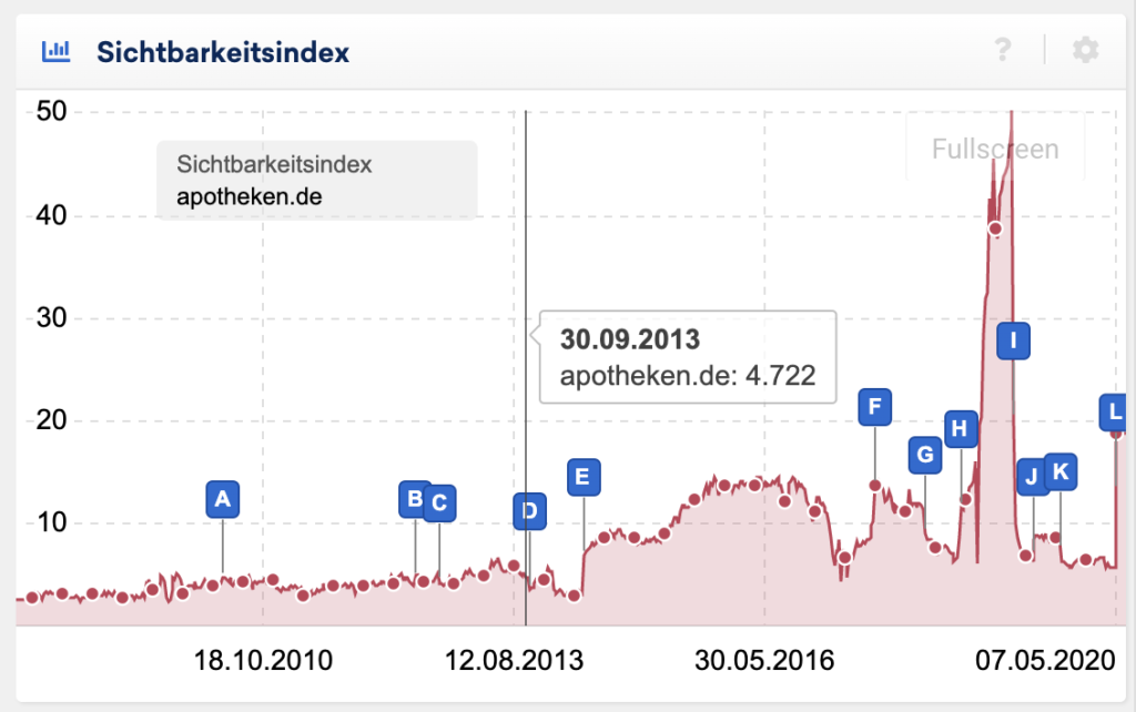 Bei der Durchsicht der Gewinner- und Verlierer-Listen trifft man allerdings auf viele alte Bekannte und kann auf den ersten Blick auch bereits die stärker betroffenen Branchen ausmachen. Wie gewohnt (und erwartet) sind gerade Domains aus dem YMYL-Umfeld (Your Money Your Life) teilweise stark vom Core-Update getroffen worden. Speziell im Umfeld der Online-Apotheken sind die Schwankungen besonders intensiv ausgeprägt. Sowohl positiv als auch negativ.