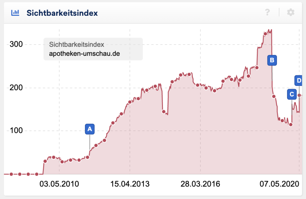 Die Auswertung einiger bekannter online Apotheken zeigt ein durchwachsenes Bild: es gibt einen krassen Verlierer (aponeo.de) und zahlreiche leichtere Verluste bei Projekten, die auch schon zum Core Update im Januar gut an Sichtbarkeit eingebüßt haben. Und wo Schatten ist, findet man i.d.R. auch Licht! Soll heißen, es gibt auch Gewinner bei den Online-Apotheken: