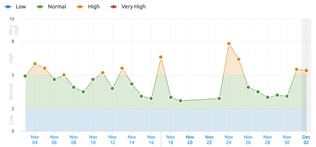 Und auch die SEO-Tools, die die SERP-Schwankungen auf Tagesbasis monitoren, haben entsprechende Ausschläge, die auf ein Core Update hinweisen:
